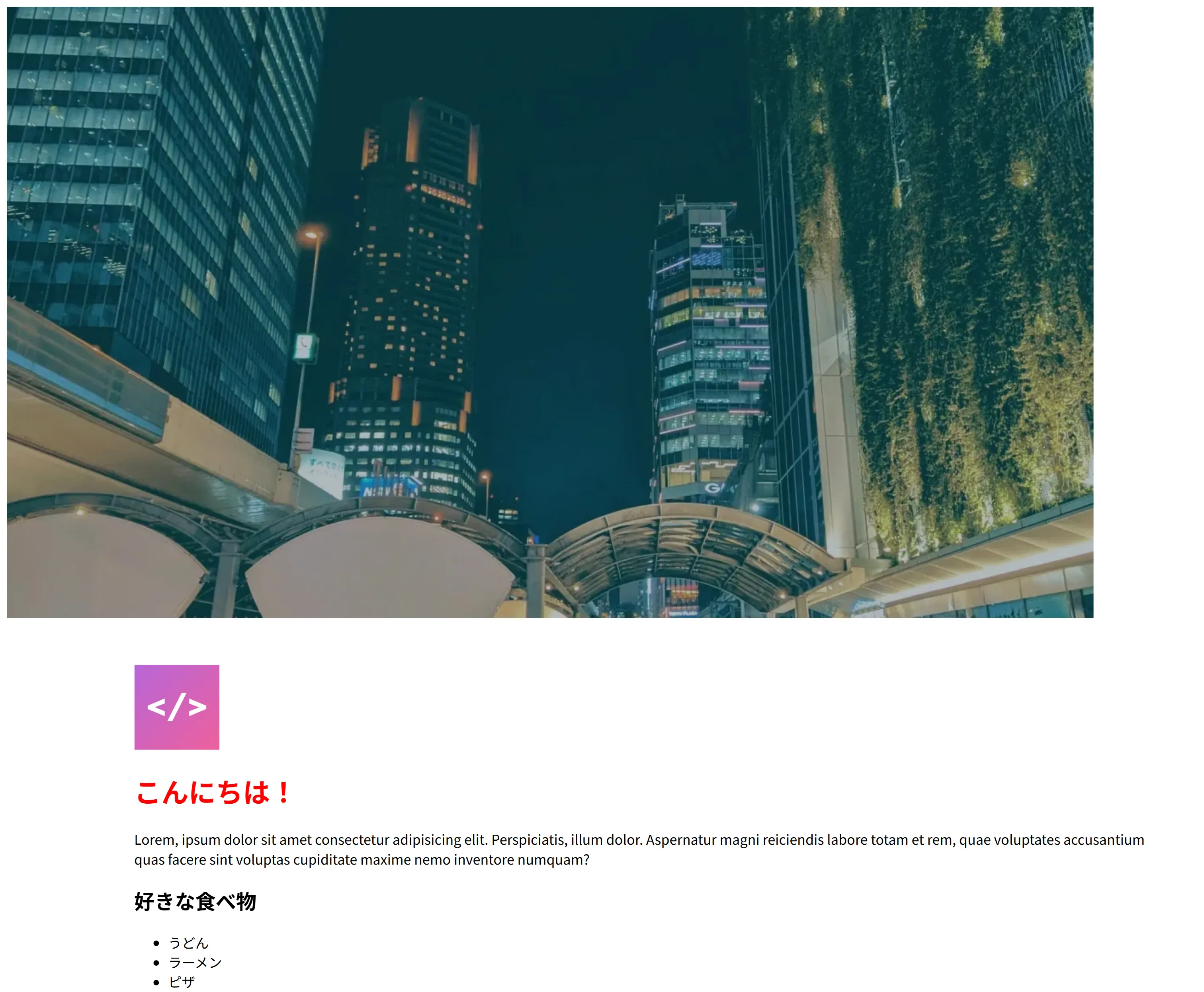 もし,class 名を好きな文字列にした場合は,CSS のhello-headingの部分は自分がつけた class 名に書き換えてください.